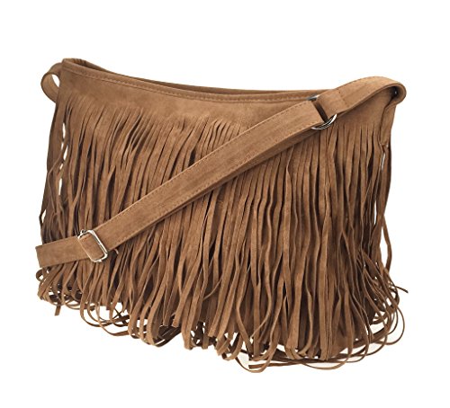 Hoxis Borsa a tracolla da donna in finta pelle scamosciata Hobo Cross Body, grigio, Medium
