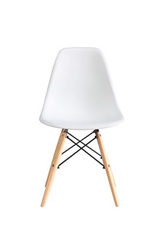 OYE HOYE - Set di 2 Vintage Sedia Sala da Pranzo Alto qualità in Pp con Piedi in Legno 40 * 46.5 * 82.5 cm, Legno, Bianco, 2-Pack