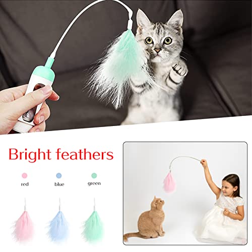 Hpbaggy Giocattoli per Gatti Gattino Interattivi Intelligenti,Giocattolo Interattivo per Gatti,Giocattolo Tumbler per Gatto,Giocattolo Divertente per Gatti, con Piuma,Bacchetta per Gatti (verde)