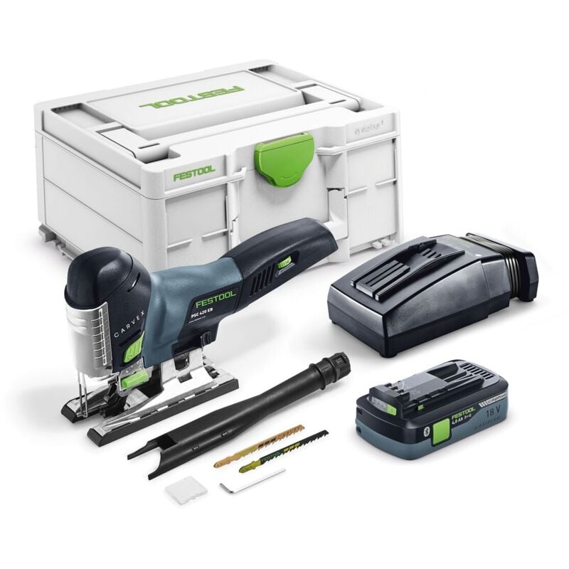 Avec cet outil, même les situations les plus complexes peuvent être résolues facilement. Avec 3800 courses/min, le puissant moteur EC-TEC à haute efficacité énergétique peut garantir à tout moment une progression constante et rapide de la coupe. À cet égard, une autre chose toujours garantie est la précision maximale - grâce au guidage au marteau spécialement développé et aux patins directionnels mobiles. Ils servent de troisième guide et maintiennent la lame sans erreur sur le chemin prévu. Et qu'en ce qui concerne le meilleur de la forme, on n'entend pas seulement le résultat de la coupe, la structure ergonomique de nos scies sauteuses à batterie le démontre aussi, qui permettent de travailler sans fatigue et de manière prolongée. Les batteries Festool Bluetooth, en combinaison avec une unité mobile d'aspiration Festool, garantissent déjà une utilisation confortable: en combinaison avec une unité mobile d'aspiration Festool BluetoothEn mode AUTO compatible, l'aspirateur démarre