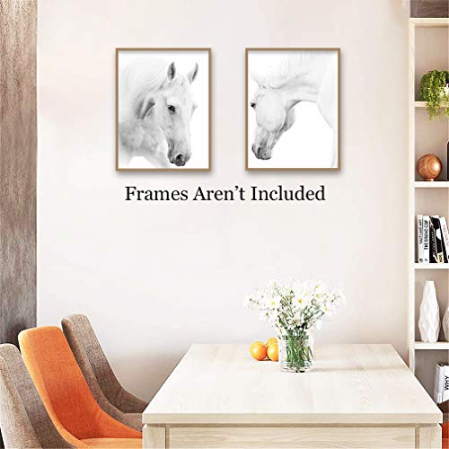 HPNIUB Set di Cavallo Bianco Poster di Moda,Moderni Stampe Parete per Soggiorno,Bianco e Nero Quadri Abbinati,Tela Animale Poster per Camera Letto Corridoio Ufficio Decorazioni,Senza Cornici,30×40CM, senza telaio