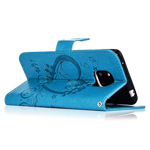 Hpory Cover Huawei Mate 20 PRO, Custodia Huawei Mate 20 PRO Portafoglio Glitter Diamante Cover Flip Case in Pelle PU con Porta Carta di Credito, Kick Stand, Chiusura Magnetica, Amore -Blu