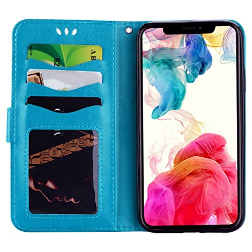 Hpory Cover iPhone XS Max, Custodia iPhone XS Max Portafoglio Glitter Diamante Cover Flip Case in Pelle PU con Porta Carta di Credito, Kick Stand, Chiusura Magnetica, Amore -Blu