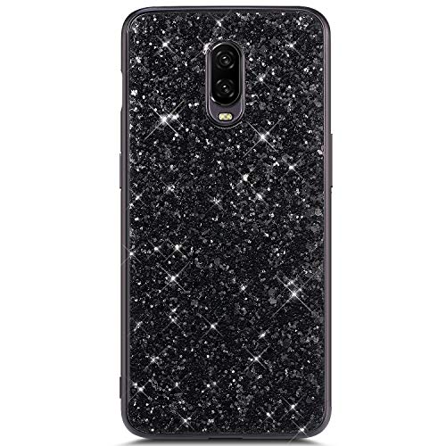 Hpory Cover Oneplus 6T Glitter, Custodia Oneplus 6T Bling - Morbido Gel Cover Placcatura Caso Custodia in TPU + PC - Back Case Antiurto Custodia Brillante [Shock-Absorption], Nera