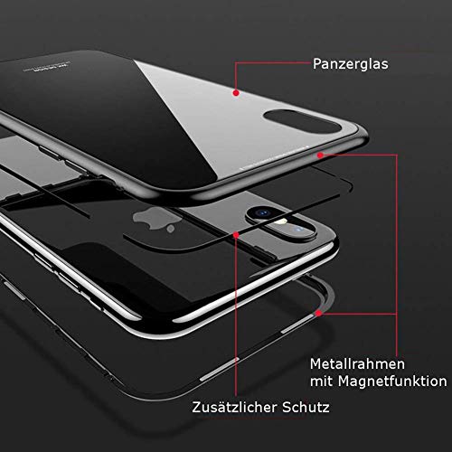 Hpory Custodia Compatibile con iPhone XR Cover Magnetic Adsorption Phone Case Ultra Slim Transparent Cover Tempered Glass Cover Posteriore Rigida Hard Back Bumper Custodia, Nera