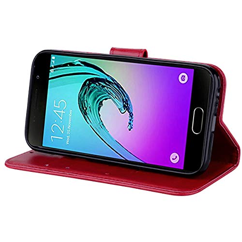 Hpory Custodia Compatibile con Samsung Galaxy A3 2017 Cover Flip Custodia Caso Libro Pelle PU e TPU Silicone con Funzione Supporto Chiusura Magnetica Portafoglio Libretto Portafoglio, Rose -Rossa