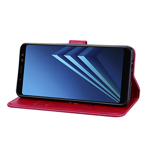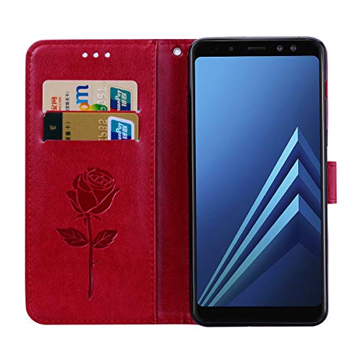 Hpory Custodia Compatibile con Samsung Galaxy J6 Plus 2018 Cover Flip Custodia Caso Libro Pelle PU e TPU Silicone con Funzione Supporto Chiusura Magnetica Portafoglio Libretto Cover, Rose -Rossa