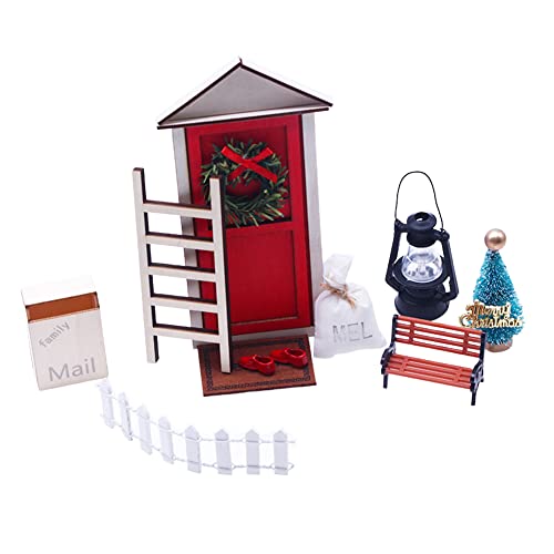 Hpory Porta Elfo Natale Kit Apribile, Accessori Casa delle Bambole in Miniatura Set Incluso Albero di Natale Corona Luci Stivali, Gnomi Porta delle Accessori per Casa delle Bambole per Natale