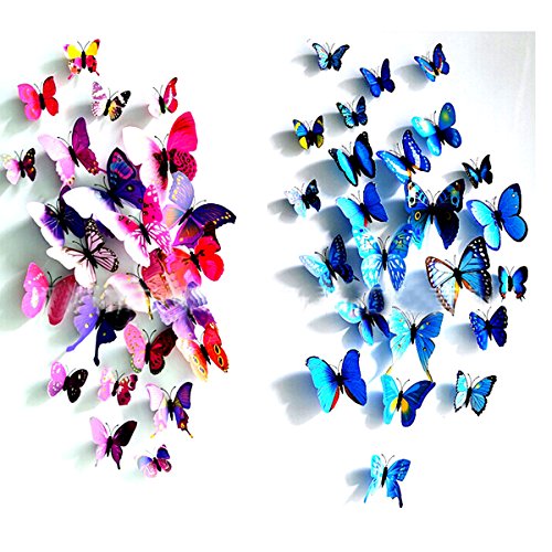 HQdeal 3D Colorato Farfalla Adesivo da Parete Removibile Frigorifero Adesivo Vetro Calamita per Matrimonio Decorazione Domestica 12pc confezione