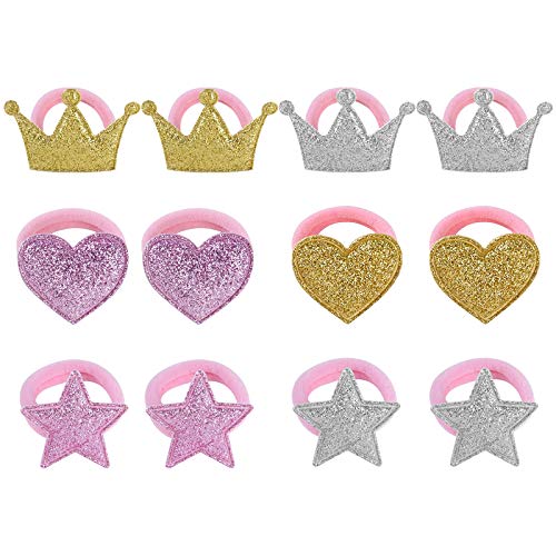 Il pacchetto include: riceverai 12 pezzi di accessori per capelli scintillanti per ragazze di stili diversi, queste fasce elastiche per capelli con stella, cuore e corona, che è sufficiente per il tuo uso quotidiano.