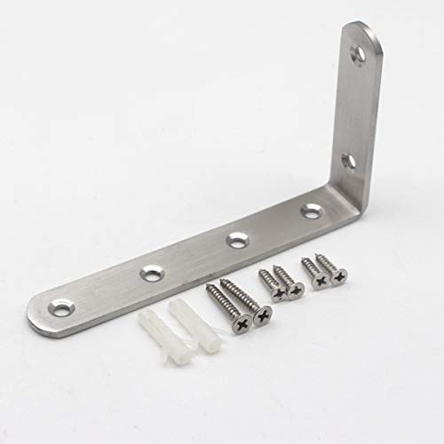 HQdeal 4 Pezzi Staffe per Mensole in Acciaio Inox, Staffe Angolari in Metallo, Supporto per Mensola, 90 gradi Angolo Retto Staffe Mensola a Muro, Staffa Angolare a L con 24 Viti e 8 Ancore, Argento