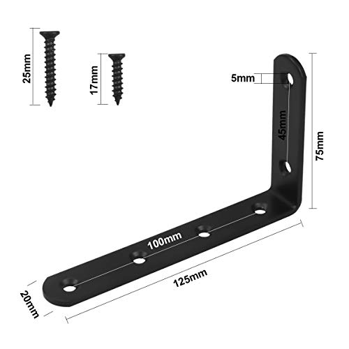 HQdeal 4 Pezzi Staffe per Mensole in Acciaio Inox, Staffe Angolari in Metallo, Supporto per Mensola, 90 gradi Angolo Retto Staffe Mensola a Muro, Staffa Angolare a L con 24 Viti e 8 Ancore, Nero