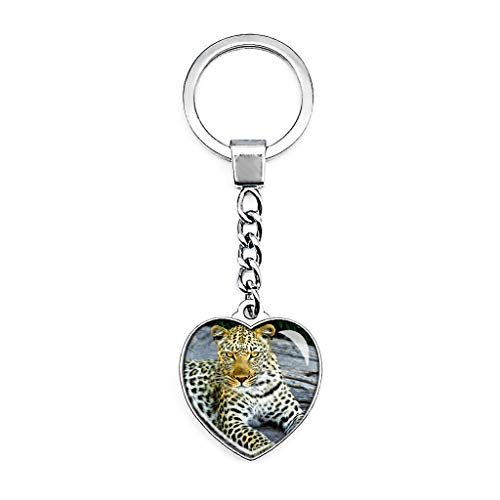 Hqiyaols Keychain Ghepardo Botswana Portachiavi Creativo Double-Sided A Forma di Cuore Cristallo Portachiavi Giro Souvenir Metallo