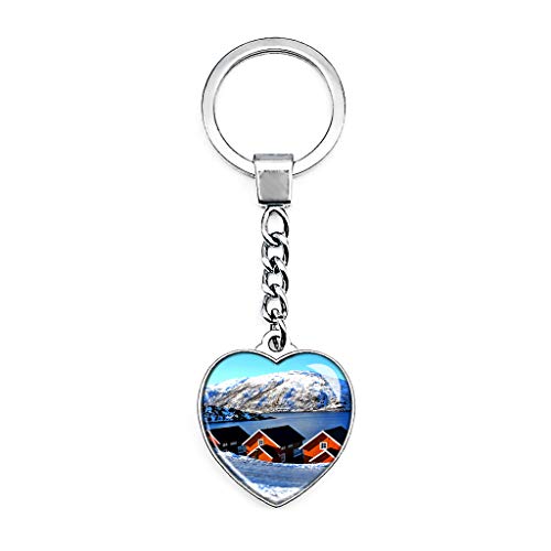 Hqiyaols Keychain Norvegia Tromso Fjords Portachiavi Creativo Double-Sided A Forma di Cuore Cristallo Portachiavi Giro Souvenir Metallo