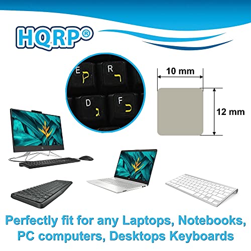HQRP Autoadesivi laminati trasparenti lettere gialle d'ebraico per tastiera di laptop / PC desktop / notebook