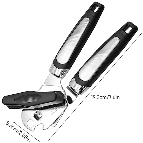 Hriymtd Apriscatole Manuale 3 in 1 Acciaio Inossidabile con Leva Apribottiglie e Manopola Ergonomica per Anziani con Artrite Sicuro, Durevole e Facile da Usare (Nero)