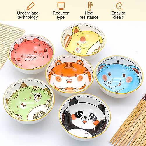 Hriymtd 6 Ciotole di Cereali Realizzate in Ceramica di Alta Qualità, 300 ml, Design Colorato, Perfette per Cereali, Snack, Insalate, Lavabile in Lavastoviglie e Utilizzabile Nel Forno a Microonde