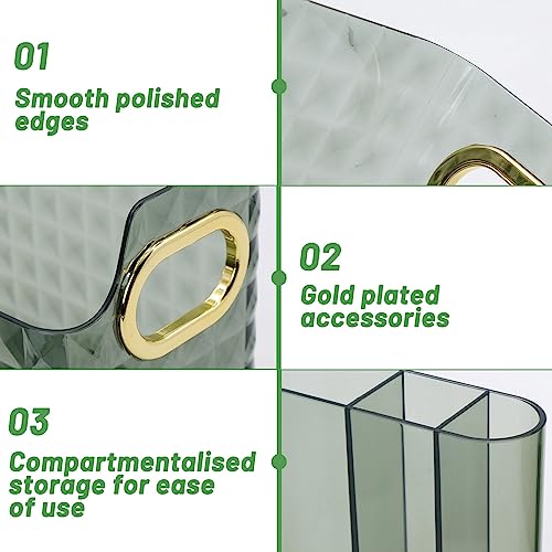 Hriymtd Organizzatore Pennelli Trucco in Acrilico Trasparente con 3 Scomparti Contenitore Pennelli Make Up per Cosmetici, Casa e Bagno, Design Elegante(18x10x12.5cm)
