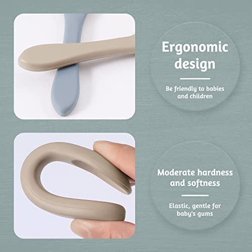 Design ergonomico, evita lesioni: Il cucchiaino in silicone è stato progettato secondo i principi dell'ergonomia per garantire una presa comoda che si adatta alle manine dei bambini. La forma del cucchiaio è ampia e liscia per evitare lesioni alla bocca o alle labbra.