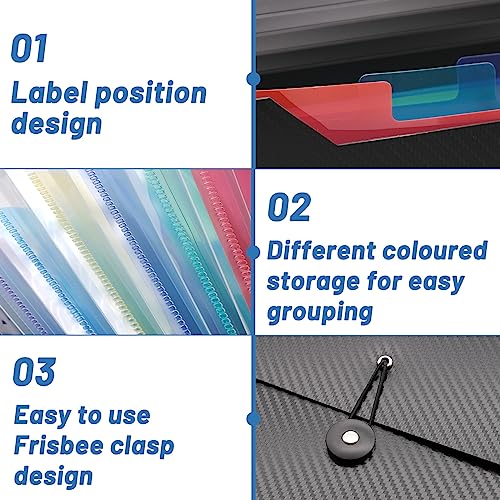 ALTA CAPACITÀ: il nostro archivio a scomparti è dotato di 13 tasche individuali espandibili, che possono essere ampliate per contenere fogli e documenti in formato A4, offrendo spazio sufficiente per oltre 200 fogli in formato A4, per mantenere i vostri file organizzati e lontani dal disordine.