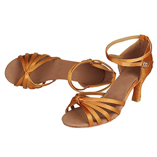 HROYL Donna Scarpe da Ballo Latino Ballroom/Salsa/Scarpe da Ballo in Raso 217-7 Marrone 36.5 EU