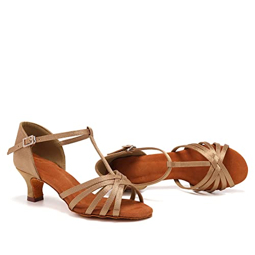 HROYL Scarpe da Ballo Donna Latino Salsa T Cinghie Scarpe Ballo in Raso da Sala,WZSP217-5-Beige,EU35