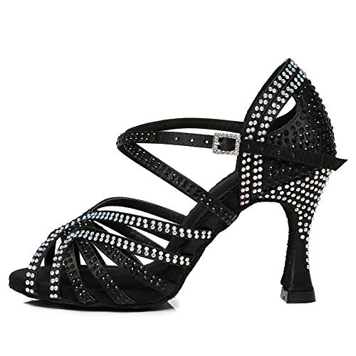 ❤️Design: queste scarpe da ballo latino sono decorate con strass che sono molto brillanti. Gli strass hanno due colori, rendono le scarpe più squisite e lussuose.La combinazione elegante e morbida di più cinghie può stabilizzare meglio i piedi.