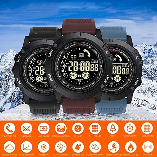 HRRH Outdoor Smart Watch, Bluetooth 4.0 quadrante Luminoso Sport Impermeabile Lungo Standby Smart Wristband Tactical Militare Pedometro,Red