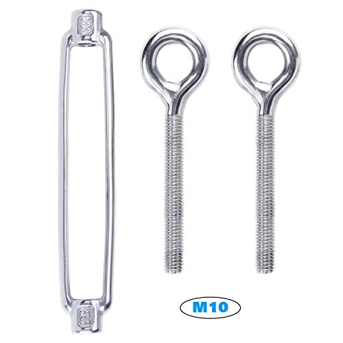 HSAEMALL - Set di 2 tendicavi in acciaio inox M10 con occhiello e occhiello, resistenti e regolabili, per cavi e cavi