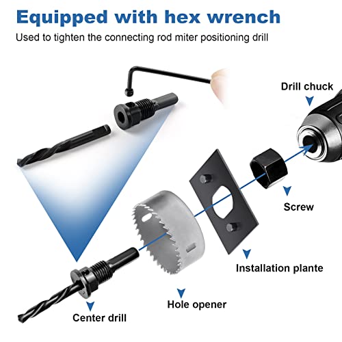 【FACILE DA USARE】: tutti gli strumenti necessari per un cambio della sega facile e veloce. Una chiave esagonale e una piastra di installazione sono incluse per l'installazione dello strumento. Sostituisci rapidamente e facilmente le seghe per la necessità di fori di diverse dimensioni. La lama della sega è facilmente fissabile a un trapano elettrico per tagliare i fori.