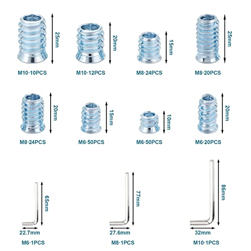 HSEAMALL 210 PZ Inserti Filettati Dadi, M5 M6 M8 M10 Esagono Incassato Dado In Legno Inserto, Zincato Mobili Vite In Dado Bullone di Fissaggio con Chiave Esagonale