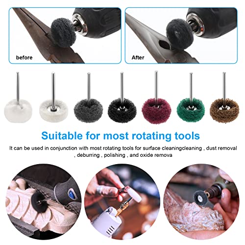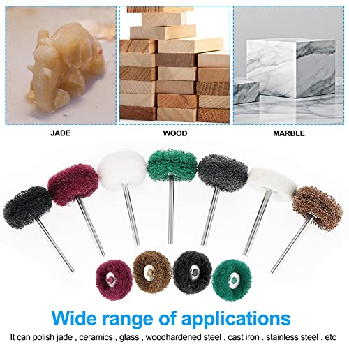 【Ampia gamma di applicazioni】: adatto per la pulizia di superfici metalliche, la derusting, la macinazione, la spolveratura, la sbavatura, la lucidatura, la rimozione dei residui. Le ruote lucidanti consentono di ottenere una finitura liscia e uniforme e la conformabilità alle superfici irregolari con sbavature minime. Ideale per rifinire mobili, pulire griglie e rimuovere vernice e ossidazione.