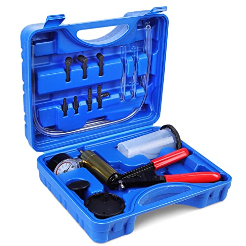 HSEAMALL Kit di spurgo dei freni, set di tester per pompa a vuoto portatile,kit di spurgo dei freni per auto,strumenti per lo spurgo del liquido dei freni,con adattatore per vacuometro per,scatola blu