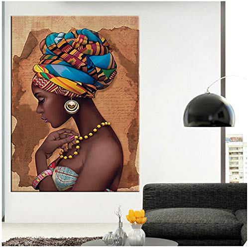 HSFFBHFBH Donna Nera Africa Pittura su Tela Quadri e Quadri Immagini su Tela complementi arredo casa Quadri e Quadri Soggiorno 30x45 cm (11,8"x17,7) Senza Cornice