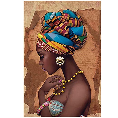 HSFFBHFBH Donna Nera Africa Pittura su Tela Quadri e Quadri Immagini su Tela complementi arredo casa Quadri e Quadri Soggiorno 50x75 cm (19,7"x29,5) Senza Cornice