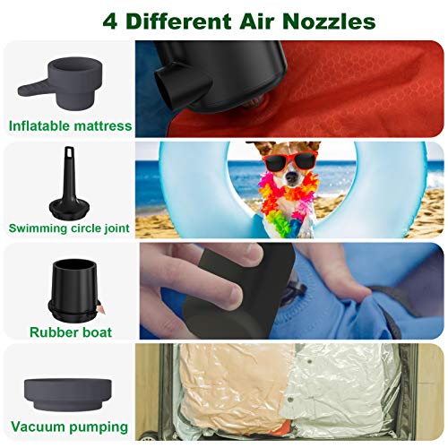 Con 4 diversi ugelli d'aria, la pompa gonfiabile può soddisfare le diverse esigenze di gonfiaggio.