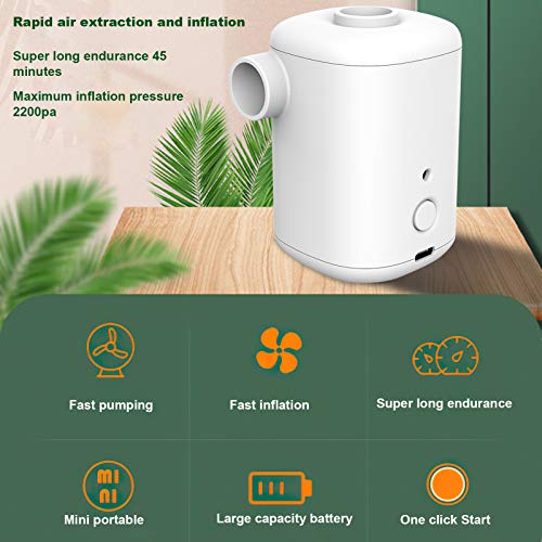 HshDUti Pompa ad aria elettrica portatile, USB di tipo C con batteria ricaricabile da 1500 mAh, per uso domestico, piscina, galleggiante ad aria, sacchetto per sottovuoto (bianco)