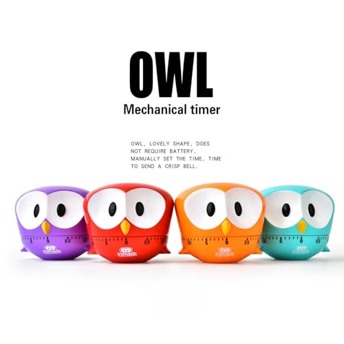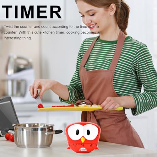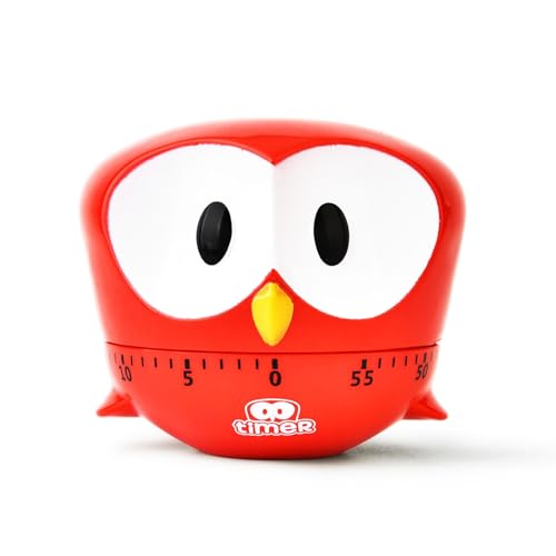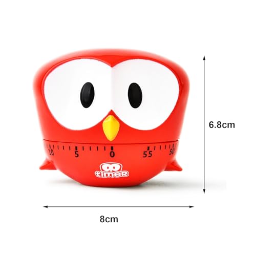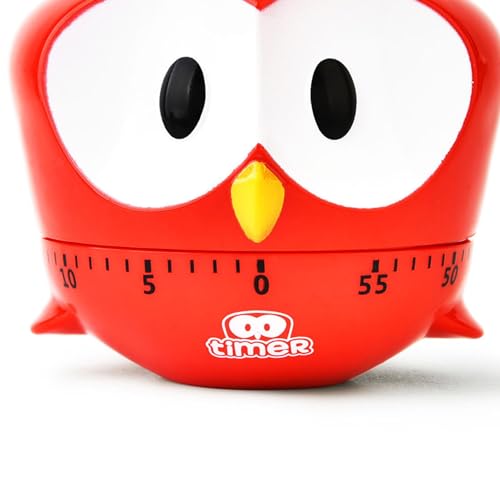 HshDUti Timer meccanico da cucina, simpatico timer a forma di gufo, per bambini, con conto alla rovescia manuale, 60 minuti, per cucinare/leggere/fare sport, rosso
