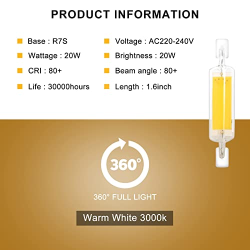 ★【Luminosità 2000LM】: R7S LED 118mm 2000 lumen, AC 220-240V, bianco freddo 6000K, angolo di diffusione della luce 360 gradi. Illuminazione istantanea. Diffusione della luce uniforme. La luminosità di 2000LM è molto adatta per illuminare ampi soggiorni.