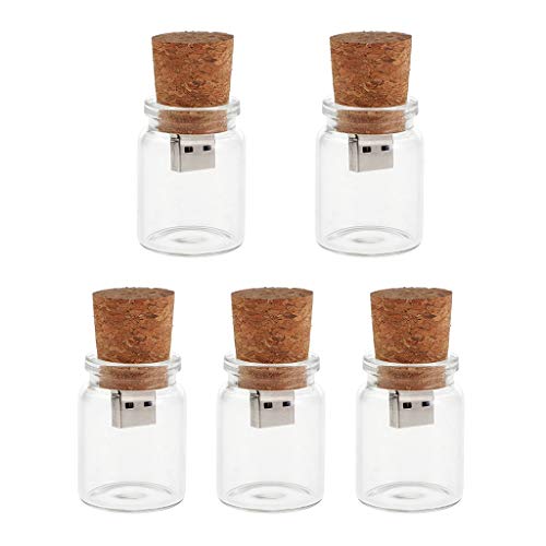Hsthe Sea 5 PACK 16 GB Simpatica chiavetta USB 2.0 Barattoli di archiviazione Scatola unica Vaso di vetro Bottiglia e sughero Memory Stick Pen Drive Regalo di nozze Elettronica Fantasia