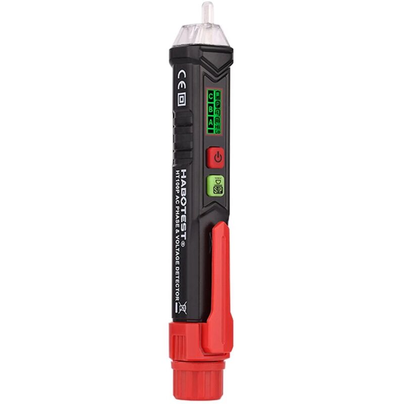 Caratteristiche: 1. Spostare la sonda a induzione NCV lungo un singolo filo per eseguire il test e l'allarme di tensione scompare quando viene rilevato lo spegnimento del circuito del punto d. 2. Misurazione diretta senza contatto, comoda per la misurazione in ambienti diversi. 3. Dopo l'accensione, premere il tasto Sensibilità Tasto /Sequenza fasi/Torcia per meno di 1 secondo per passare fino a quando sullo schermo viene visualizzato il simbolo P ed entrare nello stato di rilevamento della sequenza di fase. 4.In ambienti bui o poco luminosi, premere a lungo il pulsante della torcia per attivare in modo indipendente la funzione torcia, che è conveniente per operazioni di rilevamento reali. 5.Nessuna operazione del pulsante, spegnimento automatico dopo circa 3 minuti senza segnale induttivo. Descrizione: Questo tester è sensibile, sicuro e durevole, ada adatto al rilevamento delle prese domestiche. Caratteristiche: < p> Marca: HABOTEST Modello: HT100P Alimentazione: 2 batterie