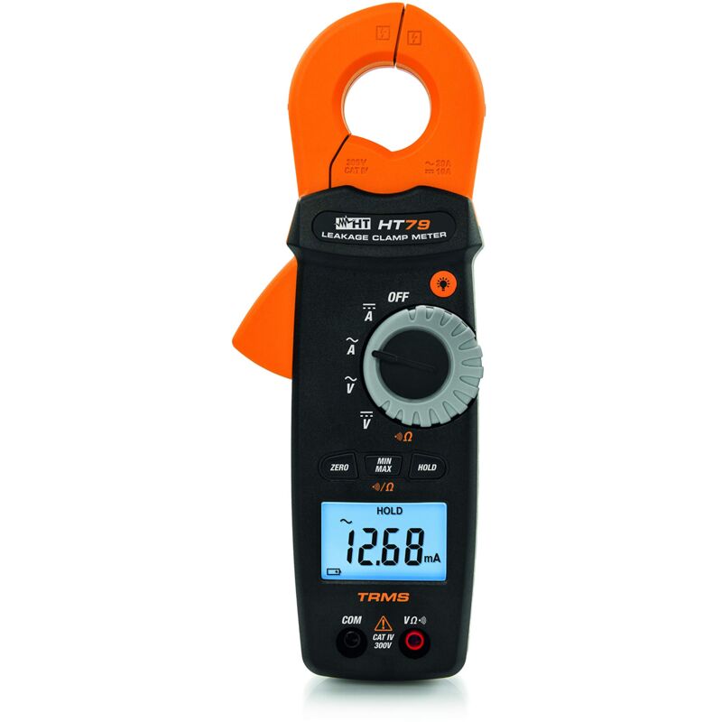 La pinza professionale HT79 consente misurazioni comode e precise di correnti di piccole correnti (deviazione, differenziazione e errore a partire da 0,1 mA AC/DC) ed è particolarmente adatta a causa della sensibilità DC per la ricerca di errori nell'impianto elettrico dell'auto e misurazione di segnali di elaborazione da 4-20 mA senza interrompere il circuito elettrico. L'HT79 dispone inoltre di numerose funzioni multimetro come ad esempio una misurazione della tensione AC e DC e un test di resistenza e continuità con cicalino acustico.