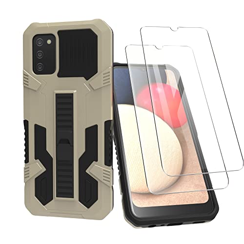 HTDELEC Cover per Samsung Galaxy A02S con 2 Pezzi Pellicola Vetro Temperato,Custodia in Silicone cavalletto Antiurto Armatura Case - Oro