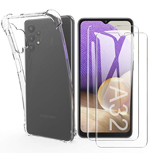 Perfetta Set: Cover Samsung Galaxy A32 5G Custodia + 2 Pezzi Premium teggi-schermo in Vetro Pellicola,tezione Posteriore + tezione Anteriore