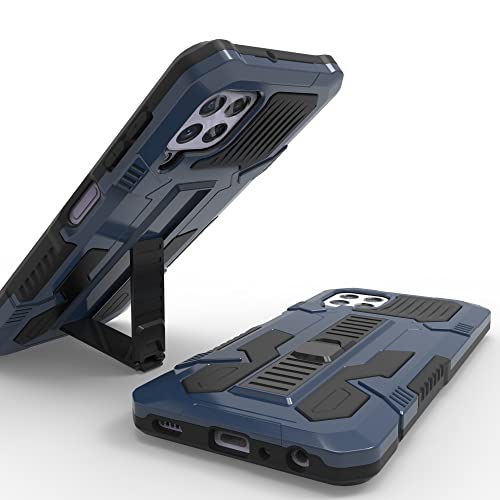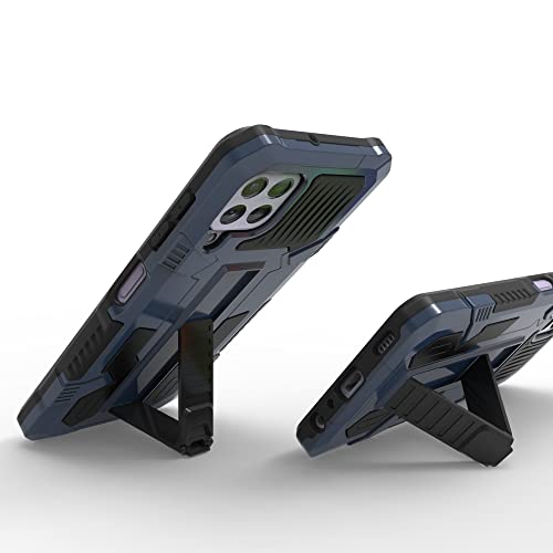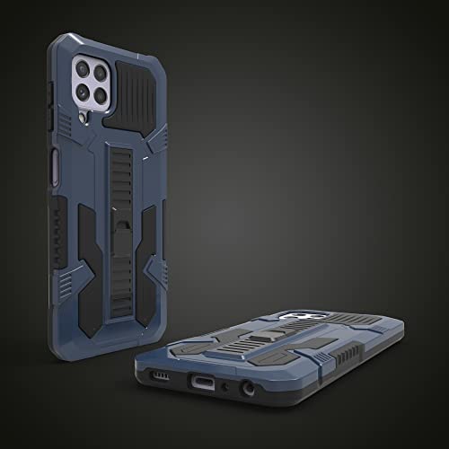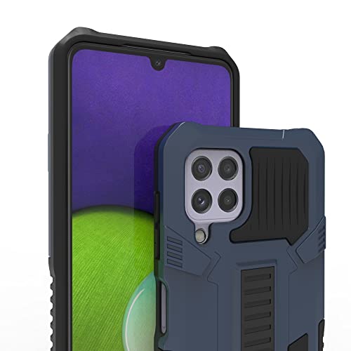 HTDELEC Cover per Samsung Galaxy A22 4G con 2 Pezzi Pellicola Vetro Temperato,Custodia in Silicone cavalletto Antiurto Armatura Case - Blu