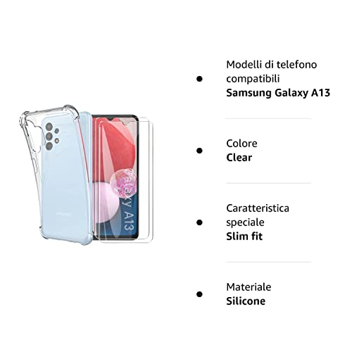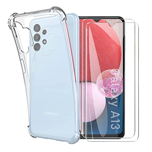HTDELEC Cover per Samsung Galaxy A13 4G / A13 5G + 2 Pezzi Pellicola Vetro Temperato,Custodia Trasparente TPU Silicone Case Antiurto Bumper Cover per Samsung Galaxy A13 4G / 5G (Clear-02)