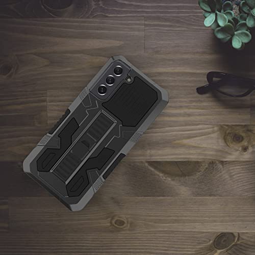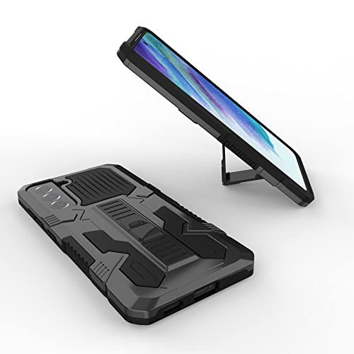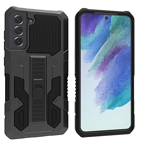 HTDELEC Cover per Samsung Galaxy S21 FE 5G con 2 Pezzi Pellicola Vetro Temperato,Custodia in Silicone cavalletto Antiurto Armatura Case - Nero