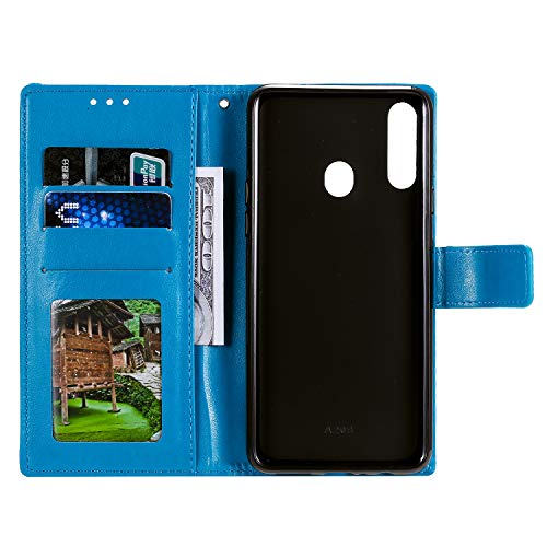 HTDELEC Custodia per Samsung Galaxy A20s,Flip Cover a Libro Samsung Galaxy A20s,Magnetica Portafoglio Protettiva in Pelle Samsung Galaxy A20s (T-Blu)