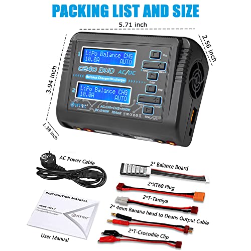 HTRC C240 Caricabatterie LiPo Dual Canale 1-6S Balance Batteria Scaricatore AC 150W DC 240W 10A per Batterie Lipo Lilon LiFe LiHV NiMH NiCd PB Smart Batterie