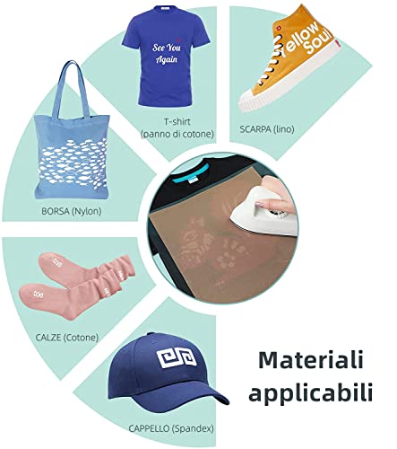MATERIALE ECCELLENTE: Il nostro htv è realizzato in materiale PU migliorato, rispetto al materiale tradizionale, il materiale aggiornato è più morbido e resistente, non si sbiadirà, non si raggrinzisce o si crepa dopo essere stato lavato in lavatrice molte volte. Ricordarsi di tenere i vestiti girati durante il lavaggio.